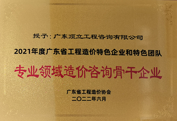 经过4个月的单位、团队自主申报、专家评选,2022年6月27日公布评选结果,我司荣获《2021年度广东省工程造价特色企业和特色团队专业领域造价咨询骨干企业》证书、《2021年度广东省工程造价特色企业和特色团队品牌造价咨询企业》证书。
